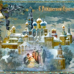 Дева Мария и Иосиф держат новорожденного Иисуса